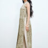 Designed in soft modal with custom monkey buttons, this sleeveless longline silhouette comes with straight white pants, creating an easy, statement-making look.