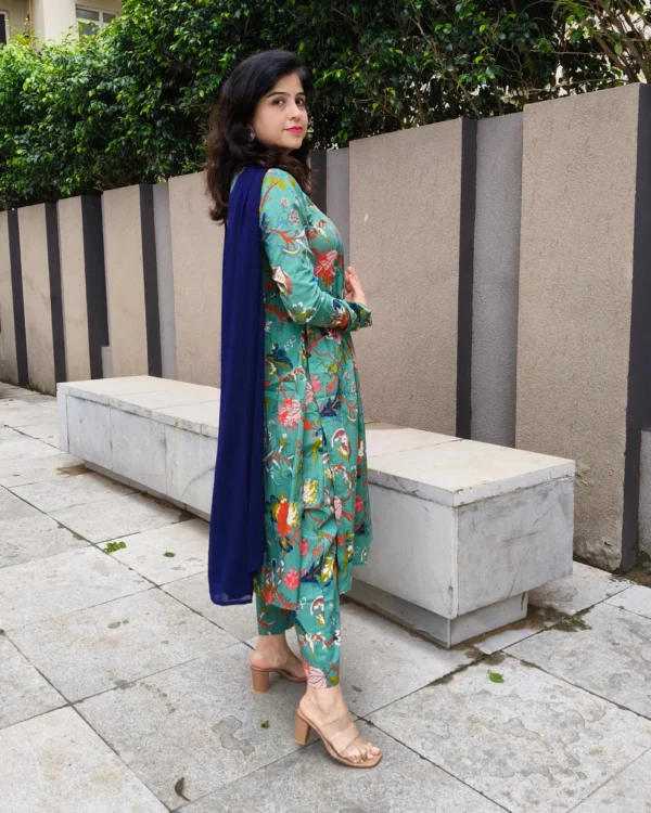 Be the first to review “Sea Green Floral Naira Cut Cotton Kurta Pant Dupatta Set” Cancel reply