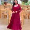 Be the first to review “Wine Georgette Anarkali Set with Sweetheart Neck & Dori Back” Cancel reply